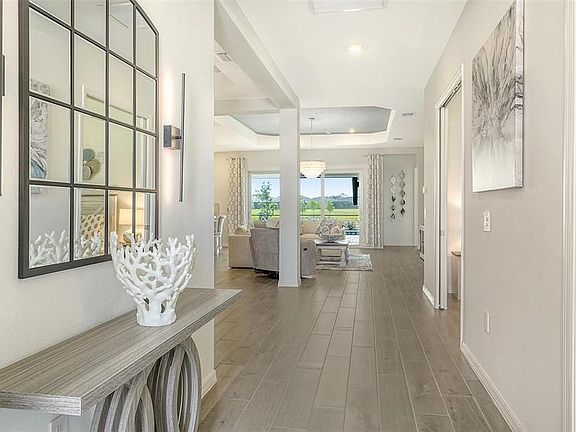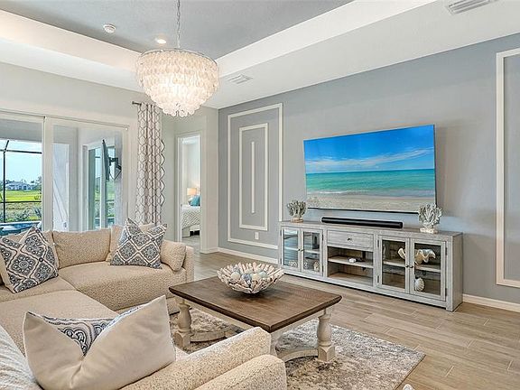 Welcome to Paradise! This lovely 3-bedroom 2-bathroom single family home is located within the gated golf Community of Wellen Park Golf & Country Club. The Angelina executive home delivers an airy open feel, with a nice floor plan designed for resort style living. Enter through the front door into an expansive great room/dining room with glass sliders leading to the spacious lanai with private heated pool and spa. The kitchen with a large island is every cook's dream and marries the kitchen and living room. This split-plan offers privacy for owners and guests alike featuring an owner's suite in the back of the home with two walk-in closets, a large ensuite bath with dual sinks, large walk-in shower and private entry to the lanai. As you enter the front of the home, the bedroom and the den (1 set up as an office with a queen sleeper sofa and the other offering a queen bed and TV) are located at the front of the home and share a full bath. Enjoy balmy evenings and meals on the lanai. Relax and entertain in your very own private oasis with private heated pool and spa. Hurricane impact resistant windows and doors are featured. Take your love of the game to the next level on the newest Gordon Lewis championship golf course. This Property offers the option to purchase a golf membership as well as access to resort style amenities such as main resort style pool, 3 satellite pools, fitness center, tiki bar, pickle ball, tennis courts, bocce ball, walking trails, kayak and paddle board rentals, farmers market, and more. Nearby Gulf beaches and take in a game at the new Cool Today Atlanta Braves training stadium. Enjoy resort style living in Wellen Park's newest golf Community!