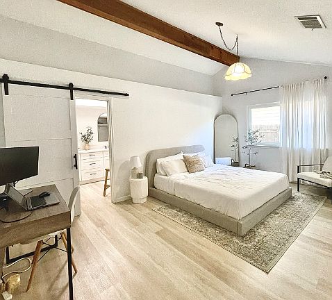 The back shed is updated in 2024 and can be used as a yoga studio or office space.