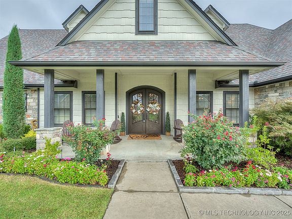 Beautiful front porch living on an oversized lot in Yorktown, Bixby schools. Extensive improvements include Pella sliding doors in family room, Pella kitchen windows, new granite countertops in kitchen, Remodeled pantry, new granite countertops in master bath & New A/C unit (1).