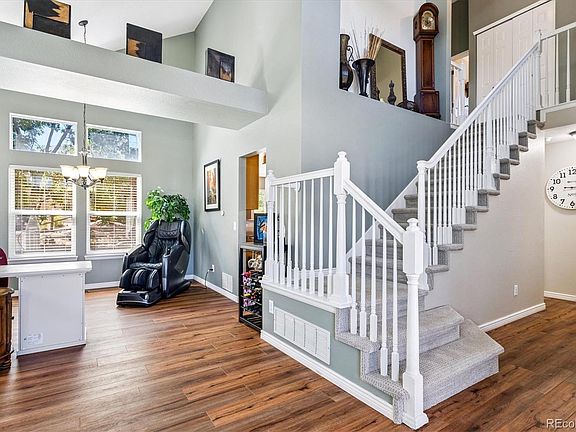 Amazing opportunity to own a home in Red Hawk, with quick access to I-25, the Outlets, downtown Castle Rock, Rec Centers, and an abundance of parks and trails. Discover the perfect blend of comfort, style, privacy, and price in this beautiful, 4-bedroom, 4-bathroom home nestled in a quiet cul-de-sac in Castle Rock’s coveted Red Hawk neighborhood. As you enter this inviting, open-layout home, with vaulted ceilings and wood floors, you will notice an airy and bright atmosphere throughout. Step into the spacious living and dining room, you will note the versatility of the spaces and how you can use them to fit your needs. The well-designed kitchen with updated appliances and eat-in kitchen space, opens to a perfectly sized family room, with gas fireplace and built-in storage. Rounding out the main floor, you will find the laundry and a half-bath conveniently tucked away down a short hall. Upstairs, you’ll find three generously sized bedrooms, including a luxurious primary suite with vaulted ceilings, a five-piece bath, and walk-in closet. The basement features a large great room, the fourth bedroom with en-suite, and a large storage area. The finished basement, with sound-reduction ceiling panels, offers added space for comfortable living, whether you use it as a second family room, playroom, game room, workout spot or office, the possibilities are only limited by your imagination. Wander into the beautiful backyard, with mature trees, where you will enjoy all that Colorado has to offer as you entertain friends and family on the expansive patio and relax in your private hot tub. Additional upgrades to the home include solar panels (installed March 2021), newer HVAC including furnace, air conditioning, and water heater.