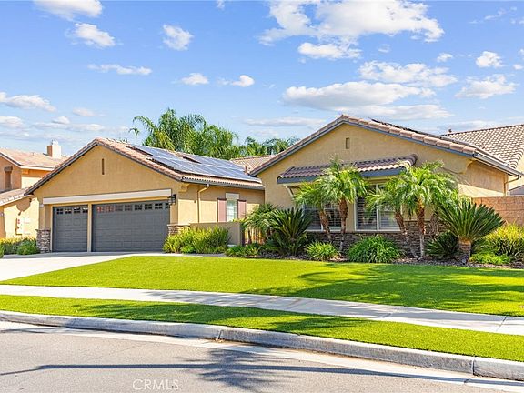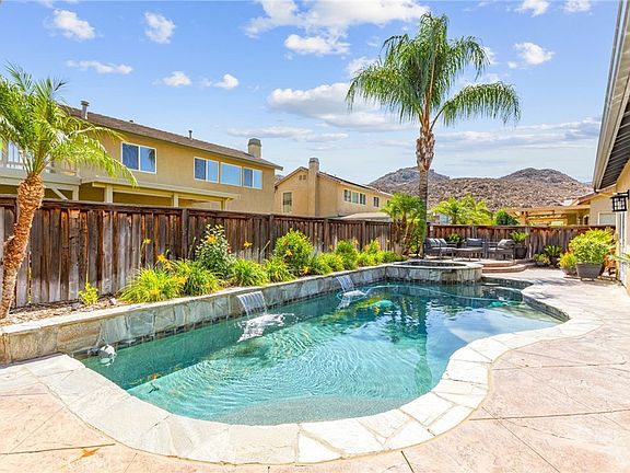 Welcome to 1272 Cragstone Drive, a stunning 5-bedroom, 3-bath home in the highly desirable neighborhood of Stoney Mountain Ranch with 2,470 sq ft of living space on a spacious 9,148 sq ft lot. This immaculate property feels like a new home inside and out. The modern kitchen is designed for both style and function, opening to bright living areas that flow seamlessly throughout. The backyard is an entertainer’s dream—completely upgraded with a sparkling pool, covered patios, and room to gather. Paid-off solar keeps energy costs low, adding even more value. With no HOA and move-in ready condition, this home is a rare find in Hemet.