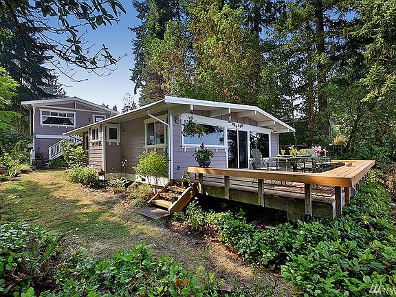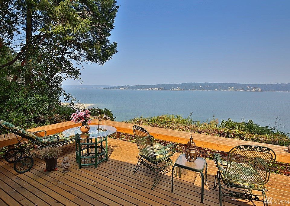 Rare Dines Point waterfront home. 180 degree view of Holmes Harbor, Mt. Baker & Saratoga Passage. Enjoy the large deck while whale & eagle watching. Extensively remodeled 899sf main home, upgrades incl Brazilian Cherry floors, granite kitchen counters, custom cabinets, tankless on demand water heater, Hardi Plank exterior siding and rolled composite roof. 497sf finished storage space above garage. Owned tidelands + share ownership in beach lot.