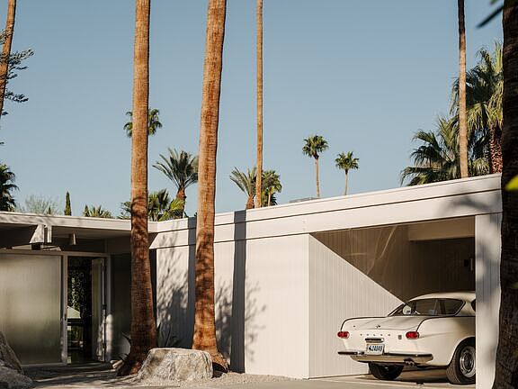 Donald Wexler, FAIA, Architect | The Wexler Residence, 1955. The property is listed on the National Register of Historic Places, and is designated as a Palm Springs Class 1 Historic Resource, with substantial Mills Act tax savings. On almost a third of an acre in fashionable Movie Colony East, two blocks from Ruth Hardy Park, the architect's own home remains a testament to the timelessness of the Mid-Century Modern design for which his name is virtually synonymous. Donald Wexler is widely considered the father of desert architecture in the Coachella Valley, "the architect who gave shape to Palm Springs" in the words of the New York Times, famous for the Palm Springs International Airport, the Dinah Shore estate, and the innovative Steel Development Houses that dot the northern edge of the city. Here in the home where he and his family lived for almost forty years, the architect employed a softer touch with an all-wood structure, incorporating elements learned as an apprentice in the offices of Richard Neutra and William F. Cody. The wood post and double-beam system, a Wexler signature, provided a flexible open floor plan which could expand and contract as the needs of the family changed. Interior walls project through floor-to-ceiling glass, connecting the eye to the landscape beyond and dissolving the indoor/outdoor boundary. Tongue-and-groove ceilings allow for the elegantly slender fascia profile, and deep overhangs shield the interior from the mid-day sun. Fortunately, the current steward has preserved these elements, along with vertical fir siding, spun metal can lights, and other original finishes that define the essential architecture. In a collaborative intervention by Donald Wexler himself, architect Lance O'Donnell, and interior designer Darren Brown, the home was completely remodeled from top to bottom, winning the Palm Springs Modern Committee's Residential Restoration of the Year Award shortly after completion. Sympathetic to the home's original design, new terrazzo floors were introduced throughout, and kitchen and bathrooms were completely redone, with stainless steel appliances, marble slabs, and European fixtures and fittings that have brought the home into alignment with contemporary lifestyle standards. Finally, a painstakingly curated Wexler White paint unifies the composition. New roof, new HVAC, and a new solar system round out the functional upgrades. The site itself is completely private, surrounded by a hedgerow, invisible from the street. Inside, however, the property opens up to the house, surrounded by ancient boulders, and a mature landscape of native plants, most likely the unsubstantiated work of designer Antone Dalu, who worked on most of Wexler's projects in the 1950s with a refresh by William Kopelk of Inside Outside. A substantial black-bottom swimming pool and detached spa offer views of the San Jacinto mountains in the distance.