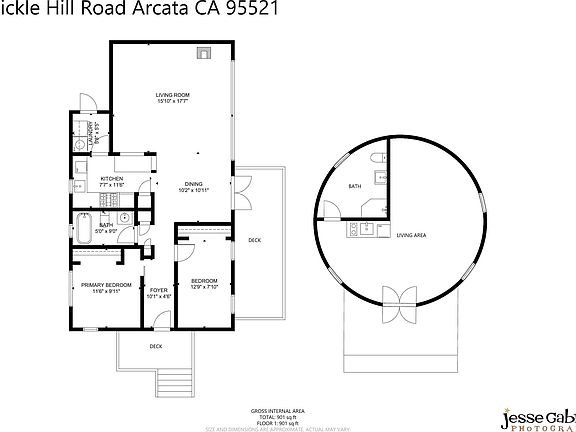 Want ACREAGE, PRIVACY, AND TWO houses? Humboldt Dream property of 1.47 acres just a short 1.2 miles up Fickle Hill, includes a charming 2 bedroom home with hardwood floors, French doors, full bath, vaulted ceilings, large deck and covered porch- perfect for relaxing and enjoying the views. gorgeous custom built-in runs the length of length of LR. ADU is 24' diameter yurt, added in 2015, newly double insulated, and sided with wood, both interior and exterior. Located away from main house., and fully equipped with kitchen and bathroom, this would make a great part of family compound or vacation rental. Yet another perk is the storage/workshop in its own gated yard, which could become another rentable unit. All inspections and most of photos are from the previous sale in 2023. This property sits close to the Arcata Community Forest, through which, one can walk to Cal Poly Humboldt. Very quick drive to downtown Arcata or to get on freeway. Internet is Optimum, very quick.
