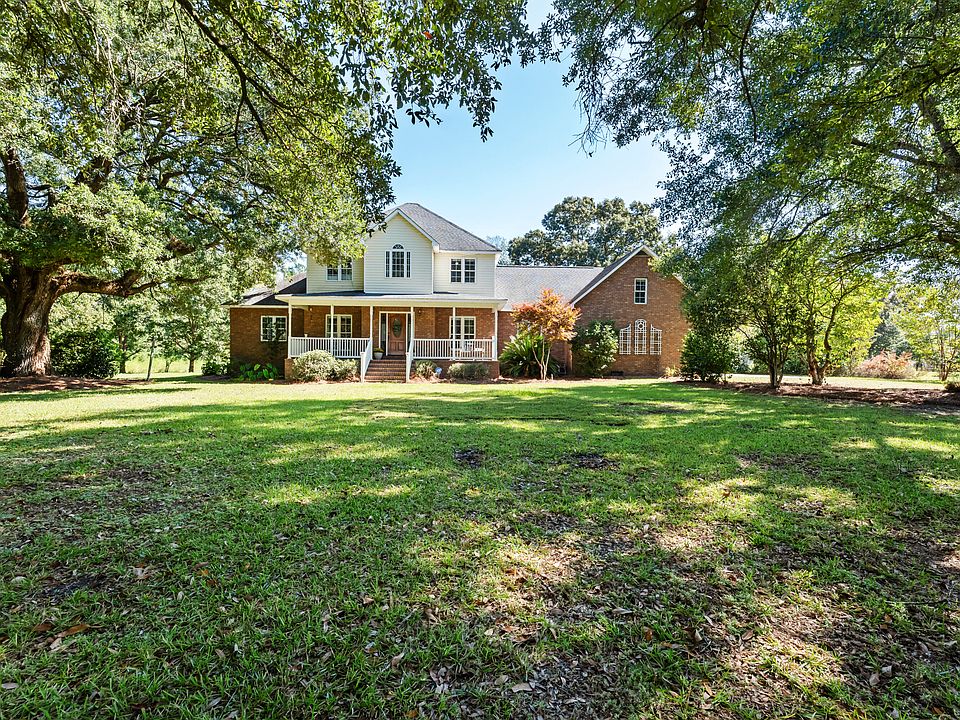 Welcome to 1272 French Santee Road -- where country charm meets modern living.This spacious 5-bedroom, 3.5-bath home is gracefully tucked beneath the shade of stately oak trees, offering both privacy and timeless curb appeal.Step inside to find 9-foot ceilings and heart pine floors that flow throughout the main level, creating a warm and inviting atmosphere. The living room features a cozy gas fireplace and opens directly to the outdoor living area. Out back, a covered patio and expansive fenced yard provide the perfect backdrop for barbecues, family gatherings, or quiet evenings under the stars.The downstairs owner's suite is a true retreat with a completely remodeled bathroom, shower, and a generous walk-in closet.An additional guest bedroom and half bath are conveniently located on the main level. The kitchen offers both function and charm, connecting to a formal dining room while also boasting a bright breakfast nook overlooking the backyard. Upstairs, you'll find three generously sized bedrooms and two full baths, providing plenty of space for family or visitors. The bonus room above the two-car garage offers endless possibilities perfect for a playroom, home office, fitness area, or media space. This home offers the best of both worlds peaceful country quiet with easy access to city amenities. With its blend of charm, comfort, and thoughtful updates, 1272 French Santee Road is more than just place to call home.