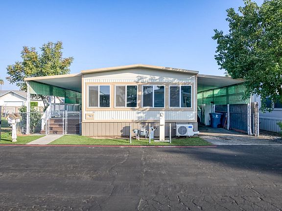 Welcome to this beautifully remodeled double-wide manufactured home located in the heart of Clovis, CA!Enjoy spacious decks on both sides of the home, perfect for relaxing or entertaining guests. Inside, you'll find three brand-new Mr. Cool mini-split systems for energy-efficient heating and cooling, new dual-pane windows throughout, and exhaust fans in each bathroom to keep the home fresh and comfortable.The upgrades continue with ceiling fans in every room, a tankless water heater and brand-new flooring that ties the whole home together. The electrical system has been fully updated with a new circuit breaker box for peace of mind. You'll also love the modern kitchen with new cabinets, completely remodeled bathrooms with walk-in showers, plus an outdoor storage shed and much more to appreciate in person.This move-in ready home sits in a quiet, well-maintained 55+ senior community, close to major shopping centers, grocery stores, restaurants, and conveniences including Walmart, a new Chick-fil-A, and many others all within walking distance.Come see it for yourself and fall in love with all the upgrades and care that make this home truly one of a kind!