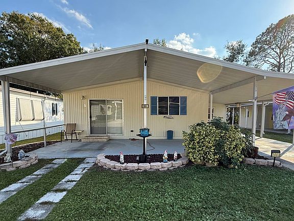 Built in 1984, this super-cute home offers a comfortable layout, solid bones, and tons of potential-just needs some interior aesthetic updating. This well-sized 2-bedroom, 2-bath residence is located in the 55+ community of Tampa East. Home has easy entry with only one small step leading into the home. Inside, you'll find a large living area, a spacious primary bedroom with an ensuite bathroom featuring a walk-in shower and a generous walk-in closet. The nicely sized guest bedroom has its own bathroom conveniently located just across the hall. The kitchen includes a new refrigerator and stove, abundant cabinet space, and a roomy pantry. A separate dining area with a built-in hutch for extra storage. The home also comes furnished for added convenience. An extra-large utility/storage area houses the washer and dryer, and the metal roof provides low-maintenance peace of mind. Outside, a large front patio, with sliders leading to the living room, offers a great spot to relax and could easily be screened in. Large carport for mulitple car parking. This pet friendly community offers a ton of amenities. The monthly $700 lot rent includes access to three swimming pools, pickleball courts, a fitness center, library, billiards, shuffleboard, two dog runs, and an active clubhouse with year-round activities. Priced to move, motivated seller! Conveniently located in Dover just off I-4, you'll enjoy quick access to Tampa International Airport, nearby shopping malls, and you're less than an hour from Disney. Listing Brokerage cannot guarantee or warrant accuracy of this information, measurements, or condition of property. The buyer assumes all responsibility for verifying all lot rent rates, costs, and rules associated with the Community.