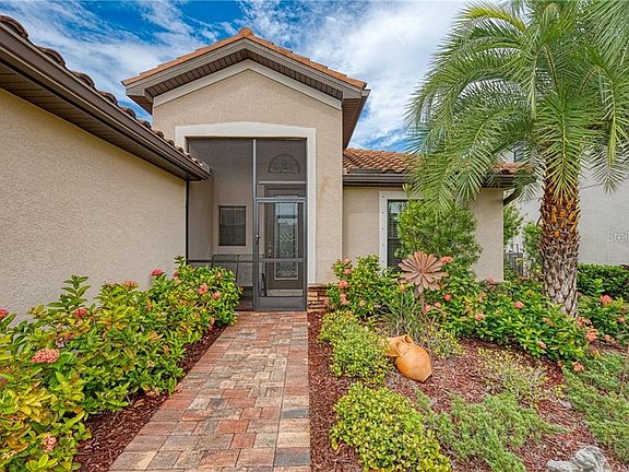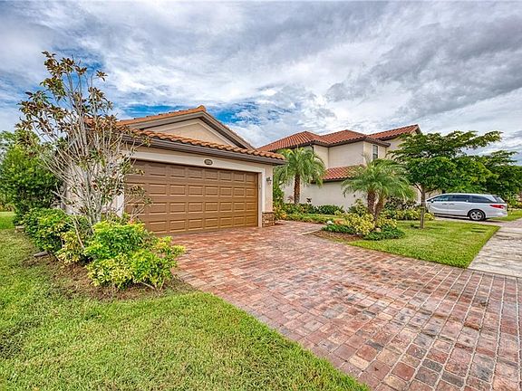 Lowest priced single-family home in Gran Paradiso! Cozy, cottage-sized home with an open floorplan located in a resort-style, gated community. Fresh carpet and paint, new refrigerator and microwave. This Lennar Ravenna plan has 3 bedrooms, 2 full baths, and a 2 car garage, set on a lush preserve, perfect for privacy and tranquility. The generous kitchen has stainless steel appliances, granite countertops, pantry, and a counter-height breakfast bar that overlooks the living area. The home has high ceilings, screened front entry and lanai, crown molding in the living areas and master, and an ample walk-in closet in the master. It is located in the fabulous and sought-after community of Gran Paradiso that boasts a resort style pool with beach entry, saunas, steam rooms, tennis courts, pickleball courts, state of the art fitness center, clubs, fitness classes, and activities arranged by the full-time lifestyle director. So, whether you want restful solitude at home or are longing for some with others, this place offers it all. At this price, it is truly a deal you do not want to miss!