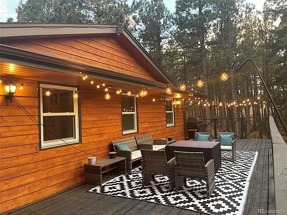 *FRONT RANGE HORSE PROPERTY ON THE WEST SIDE OF I-25- 4.7 ACRES* Unwind away from the city to this captivating forest home! Boasting 4.7 acres of pristine, truck accessible forest & meadows, convenient location between Den & CO. Springs. Bring your animals and hiking shoes - this property sits on a dead end/cul-de-sac road that backs to Spruce Mountain & Greenland Open Space surrounded by 60,000+ acres of county and state protected land. This home features a newly refinished 280 degree wrap-around balcony with breathtaking views. Enjoy the milky way each night without city lights! There is a 400' deep 15 gallon per minute Dawson Aquifer private well, & 750sf organic garden beds, fully enclosed. Along your trek down the enchanted path to the back of the property, you will find a shed & a 200 x 70' horse arena awaiting your final touches. Create your perfect space in the 1452sf outbuilding complete with 50amp electric. Turn it into a workshop, barn (already 3 stall doors), party cottage, etc. Brand new septic tank and leach field were just installed to accommodate the 5 bedrooms and 2 bathrooms. This sun filled home boasts great space and updated comforts. Brand new energy efficient windows allow for an amazing flow of fresh air, and during the cold months they will keep your home warm throughout. The main floor features the master bedroom, updated custom bathroom, kitchen, dining, living room , large mud room, & an additional bedroom. The lower level, an above ground walkout basement featuring 3 bedrooms, a bathroom, a study, laundry room, utility room, and 3 storage rooms. One bedroom has a walk-out slider to the patio and yard, another has a beautiful fireplace, & the third has a spacious walk-in closet. All bedrooms are oversized. Two of the downstairs bedrooms can be converted into an extra large family room. County maintains all roads & winter plowing. USPS/UPS/Amazon/FedEx driveway service.