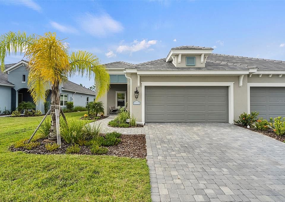Immaculate, Open-Concept design with 3 bedrooms, 2 bathrooms, PLUS a Den/Office, and extended outdoor lanai offers plenty of space. Location, Lifestyle, and Luxury in this 2-year-old villa! Split bedroom design, pocket-slider glass door, stainless steel GE Appliance package, and quartz countertops are just a few of the upgraded features in this home. IMPACT Windows and Doors so no need to mess with hurricane shutters. This villa has no carpet- all tile and LVP flooring along with beautiful, custom accent walls in each of the bedrooms and den to make this a truly standout home. All warranty items completed within the past year in this like new home. Grand Palm is more than just a neighborhood; it's a community with so much to offer! From the Social Club to lounging by one of the 3 pools, 2 spas, Fitness Center, or Dog Park; you're sure to find something that fits your lifestyle. There are all kinds of sports courts (yes to Pickleball!), playground, splash pad, fishing docks, and miles upon miles of walking trails. Food trucks and monthly social calendar are a few extra perks. Grand Palm is part of Wellen Park, close to downtown and a short drive to Venice or Nokomis Beach. Come and experience for yourself the beauty of this home within this unique, amenity rich gated community!