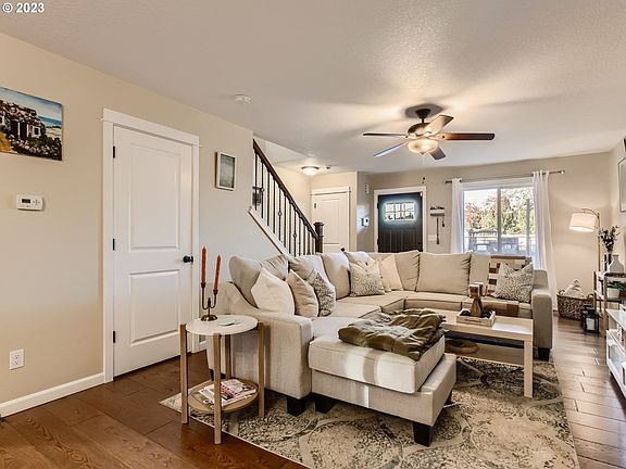 Incredible quality at a great price with low taxes, only about $1400 yr! Energy Score of 10, low utility bills. High end finishes, in like new condition. Enjoy wood flooring on the main level, even the stairs & upper hallway. Kitchen features custom cabinets, granite countertops & eating bar. Enjoy spacious Living and Dining space, w/ slider off the dining area. Extras continue on the upper level with sky light, wood builtins in the primary suite with private bathroom, patio & walk in closet with wood shelving. Includes newer fridge, w/d set, garage door opener & tankless water heater. Move in ready & no HOA! Ask about NO down payment loan & no lender fee loan w/ $1k credit to buyer. [Home Energy Score = 10. HES Report at https://rpt.greenbuildingregistry.com/hes/OR10167328]