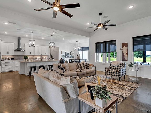 Looking for a modern house on the hill with space for every one and close to amenities? Look no further, this one is for you! This 2,709sft home sits on 1.27ac and is conveniently located to Toll 49 & I-20. The open floor plan includes 12ft. living room ceiling, floor to ceiling fireplace and stained concrete floors throughout. The back wall of windows allows a view of the patio and pool/hot tub (2021). The stunning kitchen offers a massive island, lots of custom cabinets and countertops, a dream pantry with added storage space, whirlpool gold series SS appliances. Master bedroom boasts a 10ft trey ceiling, beautiful barn door to the bathroom with double sinks, walk in shower, walk in closet AND connect to the laundry. 3 of the 4 remaining bedrooms are split, one with an ensuite bath. The 5th bedroom has endless possibilities. It has a murphy bed, closet, sliding barn doors on two walls; it could easily be utilized as an office, formal dining, 2nd living or game room. This efficient home includes foam insulation, insulated doors and zoned HVAC. The possibilities for this home are endless. Call me today to take a look and make it yours.