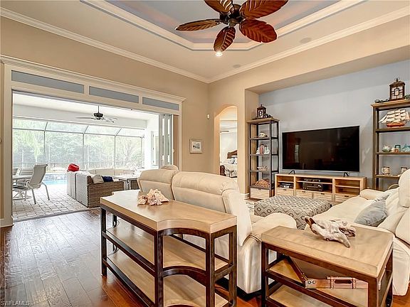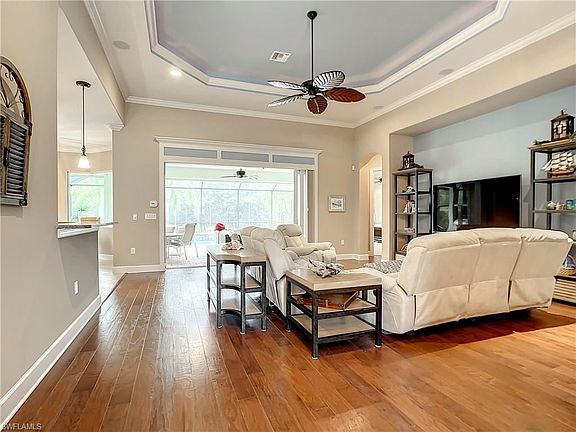 Custom Pool & Spa Home! Enjoy the serenity of the Preserve View on your oversized lot. Soaring High Ceilings give that open Florida Feel. 3 Bedrooms + Den, 2 Baths, 2 Car Garage. Lanai has Outdoor Kitchen. Saltwater Pool is Solar Heated. No See-um screened Pool Cage. Electric Hurricane Shutters & Impact Windows, Surround Sound System, Crown Molding, Tray Ceiling w/accent lighting in Family Room. Den has French Doors & Tray Ceiling. Kitchen has Quartz Counters, Tile Backsplash, Wood Cabinets, New SS refrigerator & microwave, Large Custom Pantry. Kinetico Water system. Wood Floors in Family Room & Den. Large Master Suite, Master Bath has 2 Custom Closets & Shower w/Tile to Ceiling. 2 Guest Bedrooms & Guest Bath shower has tile to ceiling. Garage has Air Conditioner, Pebble Epoxy Flooring, Large Cabinets to Ceiling & Overhead Storage Racks. All Residents enjoy outstanding amenities such as a 38,000 Square foot Clubhouse w/restaurant. Resort Style Pool & Spa, 6 Har-Tru Tennis Courts, 2 pickle ball courts, Fitness Center, locker room, & Sauna. Located near Boston Red Sox & Minnesota Twins Stadiums. Close to I-75 & shopping malls. Quick access to SWFL International Airport