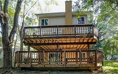 Sought after home in Lake Ridge. Open floor plan. Kitchen with granite counters, SS appliances. Separate dining area. Hardwoods in family room with wood burning fireplace walks out to 2 tiered deck. Bright master bedroom with attached bath. Large finished lower level with additional fireplace walks out deck. Private back yard backs to trees.