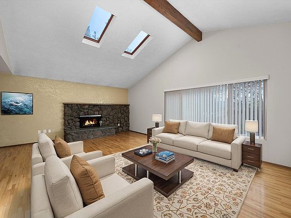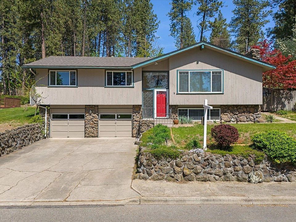 GREAT PRICE & LOCATION. First-time buyers? This 4 BR, 2.5 BA contemporary split-entry home in Spokane Valley offers 2,090 sq ft of living space, plus an 11’x15’ enclosed patio. Discover original oak hardwood floors across the main level. The living room has soaring vaulted ceilings with skylights, expansive picture windows enhancing natural light, and a cozy wood-burning fireplace–perfect for relaxing evenings. The kitchen is equipped with all appliances, ample cupboard space, a convenient pantry, and a large eating area. Down the hall, find a full bathroom serving two comfortable bedrooms, and the master suite featuring a private ¾ bathroom. Enjoy energy efficiency with double-paned vinyl windows throughout. The lower level offers a large family room with a gas fireplace, ideal for gatherings. You'll also find a non-compliant bedroom (no window/closet), a practical utility room with laundry (washer/dryer included), a toilet and sink, and abundant storage. Plus a BRAND NEW ROOF! Now, make it your own!