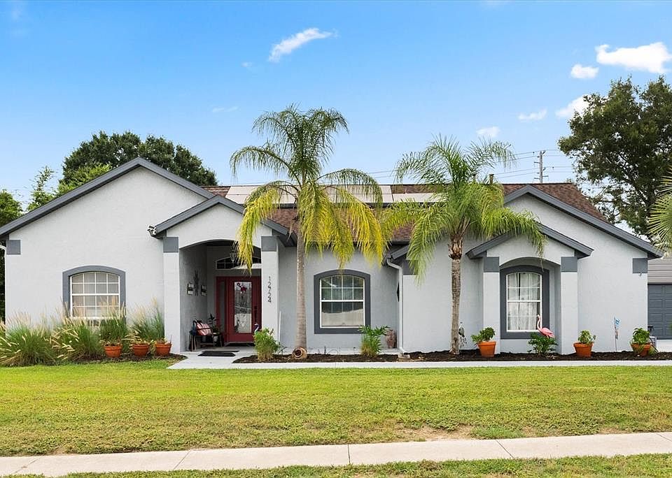Welcome to your Florida dream home! This beautifully updated 4-bedroom, 3-bathroom pool home offers over 2,500 square feet of thoughtfully designed living space, blending comfort, functionality, and modern upgrades. Freshly painted both inside and out in 2024, this home greets you with a dedicated office or den just off the entryway—perfect for remote work or a quiet retreat. Just off this space you'll find a 20 X 20 den/living room/playroom/mancave/extra bedroom or whatever your heart desires. The gourmet kitchen is a true standout, boasting brand-new stainless-steel appliances, quartz countertops, a gas stove, double ovens (including an air fryer oven), and a gas water heater. With 20 cabinets and a breakfast counter that opens into a bright and airy breakfast nook, there’s plenty of space for everyday living and entertaining. A formal dining room offers the perfect setting for hosting holiday meals or dinner parties. The kitchen opens up to a spacious living room which features an elegant electric fireplace & a large TV which conveys with the property, creating a warm and inviting atmosphere. The primary suite is a private sanctuary, complete with tray ceilings, direct access to the lanai, and a luxurious en suite bathroom featuring an updated vanity, a walk-in shower & the washer & dryer are in this bathroom; making it super easy to do laundry. Bathroom three is conveniently connected to the pool area, ideal for guests and outdoor gatherings. Step outside to enjoy the screened-in lanai and pool area, designed for relaxing and entertaining year-round. The pool has a spa and uses salt for chlorination. The backyard is fully fenced with 2 gates to enter in through, lots of fruit trees, hammocks & an irrigation system. Additional highlights include 55 solar panels with 2 Tesla batteries for energy efficiency, a spacious driveway with ample room to park an RV or boat & offers a 18 X 25 foot deep shed that is permitted with the county. The roof was replaced in 2014. The septic tank is located on the front left side of the house & was cleaned out in 2024. With every detail thoughtfully considered, this home offers the perfect blend of style, convenience, and Florida living. Schedule your private tour today and discover everything this exceptional property has to give.
