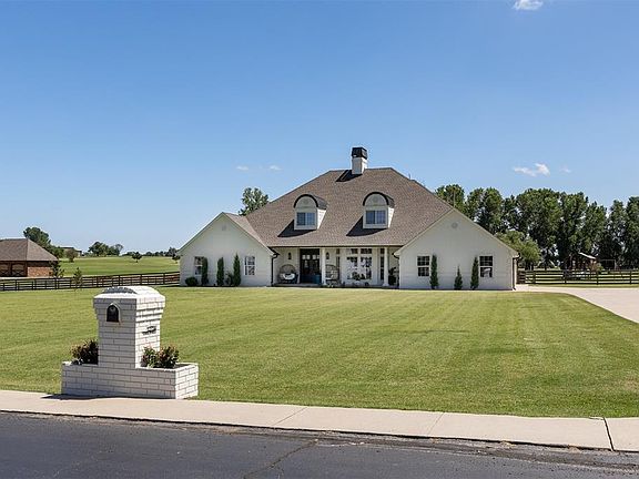 Land, lots of land under starry skies above—you’ll find it here. Here’s the twist: this property offers a rare sense of space yet sits only minutes from Mustang, Yukon and I-40 to Oklahoma City. This remodeled Dallas-style home is set on five acres in a quiet, established neighborhood of acreage estates. Its painted brick exterior, dormer windows and inviting front porch give it a classic presence, while the gracious drive and neat landscaping add to the welcome. Inside, natural light fills the home. The formal living room is a centerpiece with exposed wooden beams, generous windows and a marble-surround fireplace—perfect for gatherings or a quiet morning coffee. French doors open to the covered back porch, a natural extension of the home where you can grill, dine or unwind. The kitchen connects seamlessly, designed for beauty and function with quartz countertops, a hidden pantry, SubZero refrigerator, commercial gas range, custom cabinetry and a large center island. Just off the kitchen, a formal dining room sets the stage for special occasions while a bay-window breakfast area is ideal for family meals or soaking in the view. The second living room is relaxed with built-ins, a fireplace and large windows framing the outdoors. Two primary suites on the main level offer comfort and versatility, each with a well-appointed bath and generous closet. Upstairs, there’s another ensuite bedroom plus two additional bedrooms served by a hall bath, along with a bonus room and an exercise room that can also serve as a fifth bedroom. A spacious mudroom and laundry with a pet wash station is one of the thoughtful details that make daily life easier. Outside, the land opens up around you, inviting evenings under the stars, animals grazing, gardens growing or projects in the 30x20 shop. In the Mustang School District and minutes from I-40, shops and restaurants, this beautifully updated five-acre property offers land, privacy and luxury living in a location that’s hard to match.