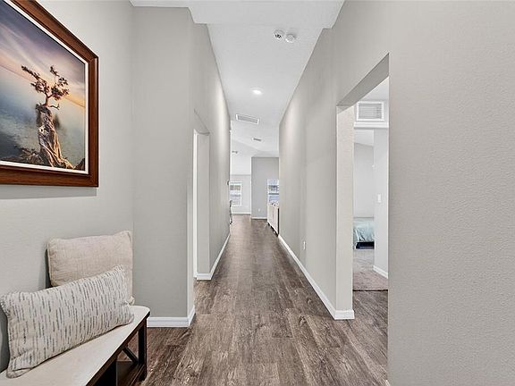 Short Sale. Score a GREAT DEAL on this BEAUTIFULLY maintained 4 bedroom, 2 bath Casa Fresca built home offering plenty of space for the family! Pride of ownership is evident in this property, as the home is CLEAN and WELL-KEPT. Featuring stylish and easy to maintain LVP wood-look flooring, this home boasts a BRIGHT and open layout with high ceilings in the family room that create an inviting sense of space. The kitchen shines with stainless steel appliances, sleek QUARTZ countertops, and ample cabinet space—perfect for everyday living or entertaining. The split floor plan provides privacy for the primary suite which includes a MASSIVE walk-in closet and ensuite with dual sinks, a standing shower, and private commode. Enjoy outdoor living in the fully fenced backyard, ideal for pets, play, or weekend gatherings. Situated on a desirable corner lot, this home combines curb appeal, functionality, and move-in-ready condition. Located in the desirable neighborhood of Triple Creek, residents have access to community social events, three community pools, two clubhouses, two fitness centers, basketball, tennis, volleyball and pickleball courts, walking trails, playgrounds, dog parks, and so much more!