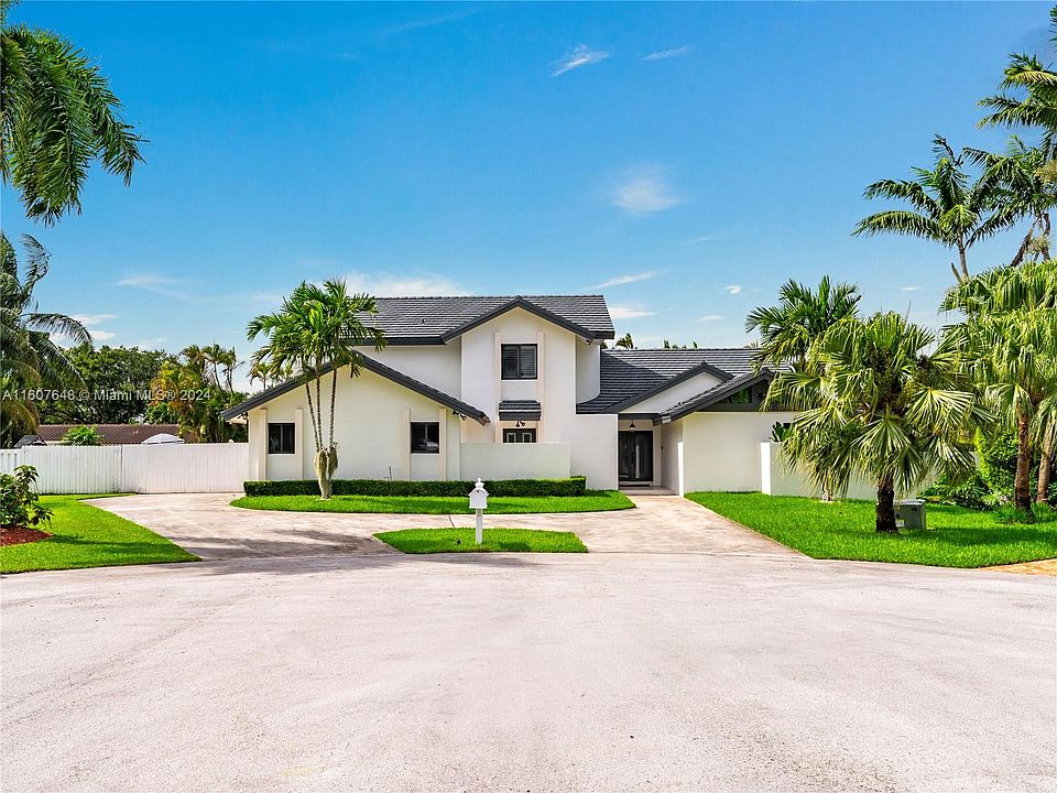 Beautiful, spacious & fully remodeled home, on a cul-de-sac, prime lot. Featuring two floors, 4 bedrooms, 4 baths, Impact windows throughout, and a hurricane-impact front door. Exterior paint and roof resealing, high ceilings, and modern AC vents. Brand new floors with Spanish tiles and oak wood stairs. Plantation shutters, automatic blinds throughout the house. Synergy water softener system for the whole house. Saltwater pool. The chef's kitchen is the heart of the house, with state-of-the-art appliances and quartz counters overlooking the dining and pool area. The first-floor main suite is a spacious, tranquil retreat with a stunningly designed spa bath. Close to the best private schools, 10 minutes to Pinecrest. 3-minute drive to The Falls. This home offers everything on your wishlist.