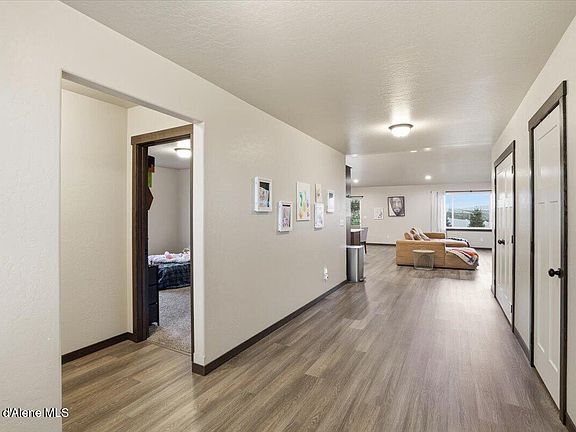 Nestled in the Brookshire neighborhood of Rathdrum, this residence is situated on a large lot within the Lakeland School District. The inviting open-concept design highlights the expansive great room, seamlessly flowing into the kitchen and dining area, accentuated by a vaulted ceiling that enhances the sense of space. The kitchen features a large pantry, perfect for hosting gatherings and meals. Abundant windows bring in natural light and offer picturesque views of the surrounding landscape. The backyard serves as a delightful retreat, showcasing mature pine trees, fruit trees, and berry bushes, along with a garden area ready for your planting projects.