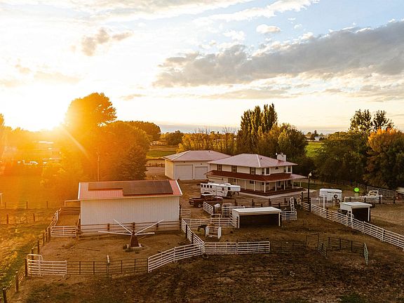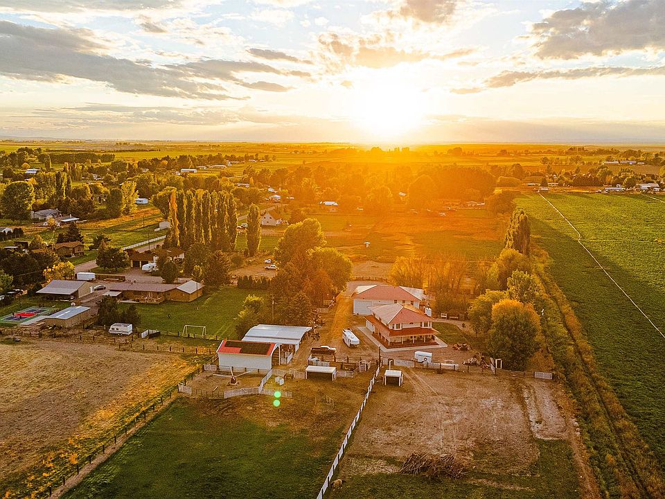 Country lovers, welcome to your dream property! This one-of-a-kind estate is nestled at the end of a cul-de-sac and offers the perfect balance of space and flexibility, with convenient access to town- sitting on 4.25 acres. The expansive main home offers over 4,500 sq ft of thoughtfully designed living space featuring 6 bedrooms, 3 full bathrooms & an inviting wrap around porch. Steps away is the 2,688 sq ft shop/apartment. The shop is heated & insulated with a shop bathroom, 20' semi/ RV pass-through doors, extra-thick concrete/ preventative fiberglass floors for heavy-duty durability & a car lift that stays! Apartment above the shop is 1,344 sq ft- 3 bedrooms/ 1 bathroom and is complete with its own laundry room, 2 entrances and a balcony to overlook the property. It would make a great guest house, rental unit, or private retreat. Underneath the apartment is a 4-car garage currently being used as an oversized tack room. Irrigation is provided by Fort Hall (5 water shares)- est. $300/ year. Notable features include a metal roof, new furnace and AC units (2022), a hay barn, 2 loafing sheds, septic main replaced (2025), upgraded electrical panels with room for additions, radon mitigation system, solar panel system, a sump pump in basement, and spectacular unobstructed view over the pastures. Whether you're looking for income-producing possibilities, a self-sufficient homestead, a spacious workshop, room for all of the animals or simply a tranquil escape with room to breathe- this property offers it all!