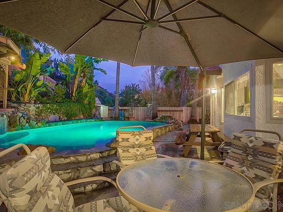 Location, location, location! This entertainers dream custom home shows incredible pride of ownership to the point where you can see AND feel the love the owners have put into this beautiful property. Owned solar, pool with spa, RV/Boat parking, wine cellar, Tuscan kitchen with island, sits on .62 acres of land, bedroom and bathroom downstairs, greenhouse, Poway schools, built in BBQ, completely private with no neighbors behind, split level master bedroom, walk in closet, custom pullout cabinet organizers & recessed lighting in kitchen, ceiling fans, central A/C, all appliances come with the home. Views West Neighborhood Park within walking distance. Must see!