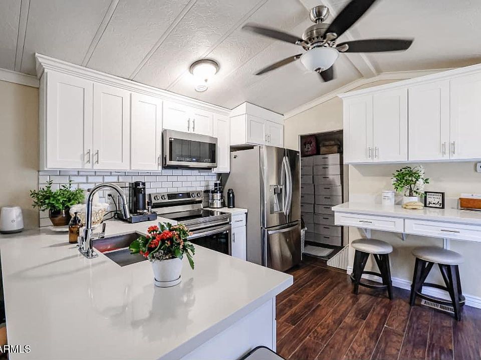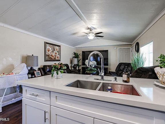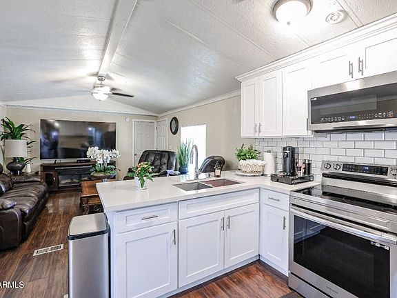 WOW. This beautifully updated 2-bedroom, 2-bathroom manufactured home offers modern comfort and style at an incredible value. Step inside to a stunning kitchen with brand-new appliances, sleek finishes, and updated flooring that flows seamlessly throughout. The spacious living room is designed for both relaxation and entertaining.
