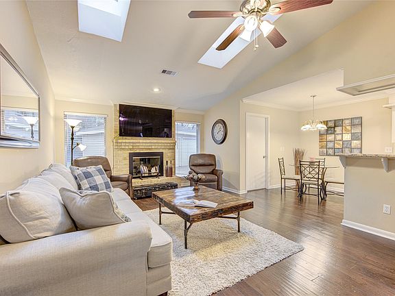Remodeled one-story home in the heart of the Energy Corridor offers style, comfort, and space. A bright, open floorplan with vaulted ceilings and skylight fills the living and dining areas with natural light. Hand-scraped wood floors extend seamlessly through the main living spaces, creating warmth and elegance. The modern kitchen is a chef's dream with granite counters, stainless steel appliances, and a subway tile backsplash. Four spacious bedrooms are all on one level, including a flexible room perfect for a home office, study, or playroom. The primary suite features a beautifully updated bath with a double vanity, walk-in shower, and generous closet space. Secondary bedrooms provide plenty of room for family or guests. Lovingly maintained and in pristine condition, this home offers a rare opportunity to lease a stylish property at an exceptional value in one of Houston's most desirable neighborhoods.