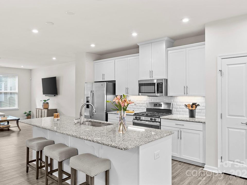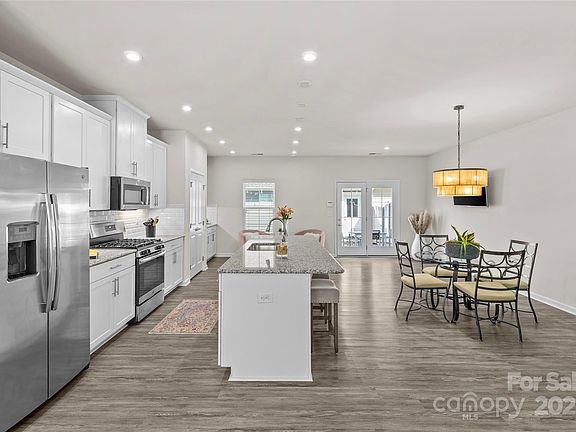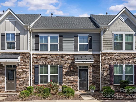 Welcome to effortless living in sought-after Bryton Square! Seller offering $3,000 in paid closing costs for buyer with acceptable offer! This move-in ready townhome offers 1,852 SF of thoughtfully designed space, featuring an extended main living area that creates additional room for gathering and entertaining. The open-concept floor plan includes luxury vinyl plank flooring, neutral paint tones and abundant natural light throughout. The kitchen is equipped with an over-sized island, granite countertops, stainless steel appliances and ample cabinetry. The spacious primary suite provides a private retreat with generous closet space, while the laundry area is conveniently located on the second level. Two additional bedrooms and a full bath complete the upper floor. Enjoy a private courtyard-style yard and patio plus a detached two-car garage, offering added storage and function. Located just minutes from Interstate 485 and Downtown Huntersville, this residence provides an easy commute to Charlotte and surrounding suburbs. Community amenities include a pool, clubhouse, playground and plenty of green space with sidewalks throughout. With low-maintenance living and convenient access to shopping, dining and entertainment, this home is an ideal opportunity for buyers seeking value with a touch of luxury!