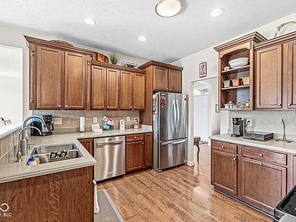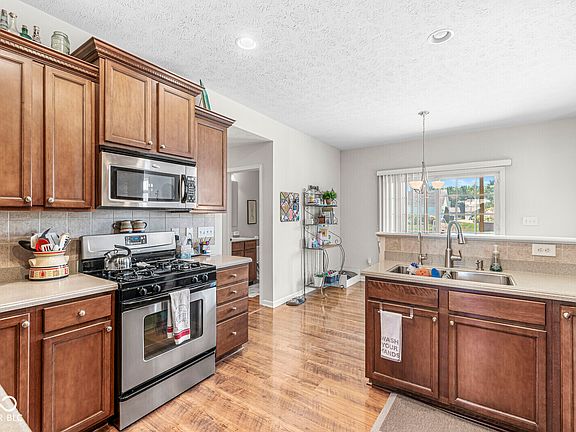 This large 4-bedroom 2.4-bath with a 3-car garage has many features for a growing family: a kitchen with plenty of staggered cabinets with crown molding, corian countertops, and a stylish tile backsplash that flows into the family room with 9-foot ceilings and a gas fireplace to enjoy those chilly evenings. Step outside to a screened porch overlooking a large backyard, giving plenty of room for kids and friends to play and entertain. Step Upstairs to the large primary suite with a sitting room, vaulted ceiling, and walk-in closet. The primary bath has a double-sink garden tub with a separate shower. Take note of the other large bedrooms, giving plenty of room for growing kids. Do not forget to step down to the finished basement and make the large rooms fit your style of living. Storage in the basement, bathroom RI, sump pump with backup, water softener, and water purification systems are new, with the tankless water system put in 2017.