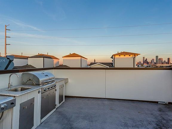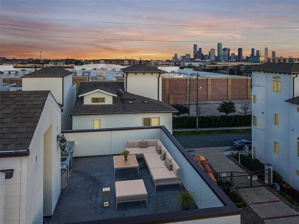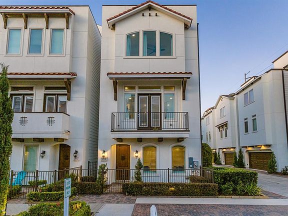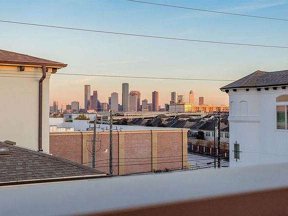Centrally located Mediterranean style freestanding home with unobstructed views of Downtown! This corner lot in the gated community of Vista de Sevilla features upgrades such as wood floors throughout (no carpet), plantation shutters, surround sound (all bedrooms & living room), dramatic cove lighting throughout the 2nd floor, epoxy flooring in the garage & a custom built in grill on the rooftop deck. The Kitchen is highlighted by quartz countertops, soft-close drawers, dry bar, recess lighting & soaring ceilings. Come take advantage of this beautiful Rice Military home that has plenty of outdoor space from your own gated front yard on the 1st floor, balcony on the 2nd floor & rooftop terrace with views to die for on the 4th floor! The community of Vista de Sevilla has a beautifully landscaped esplanade with a community gazebo for entertaining & plenty of guest parking giving a great neighborhood feeling all while being in the center of the city. Fridge STAYS. No Flooding.