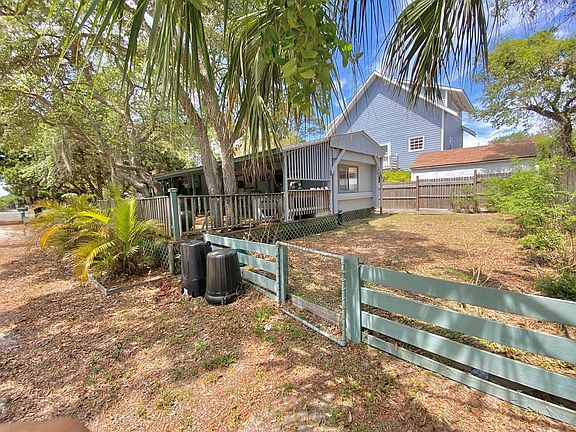 This lovely, cottage-style mobile home has a spacious fenced yard, great for children and pets alike. The sprawling front porch addition, built around oak trees and bordered by small palms out front, embodies the peaceful atmosphere our island town is known for... Enjoy the salty Cedar Key air on the covered porch while you cook your meals in the summer kitchen, or relax in the shade of the oak trees on the open deck. This two bedroom home boasts a split floor plan, with an eat-in kitchen and a bright, welcoming living area in between. The kitchen, living room and main bathroom are freshly painted, and there's a brand new full lite front door with internal blinds for added privacy. The bedroom off the living area has a walk-in closet and ensuite half bath. The other bedroom is down the hall from the kitchen, with a full bathroom right next to it. Outside, there's a shed for storing lawn equipment or a small golf cart for cruising around town -- all just minutes from downtown Cedar Key!