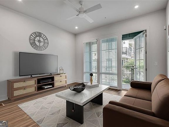 Welcome home! This open-concept design highlights a gourmet kitchen with quartz countertops and stainless steel appliances. The living room flows to a covered terrace, perfect for entertaining or relaxing. A first-floor flex space makes an ideal home office or workout room. Upstairs, the secondary bedroom features an ensuite bath and walk-in closet. The primary suite offers a sizable walk-in closet, luxurious bathroom, and a full wall of windows overlooking green spaces, tree top views, and some of the community amenities, free from other buildings blocking your view. Past the amenities, you'll almost be able to one of the final Beltline connections just around the corner from your front door. Taking the car? For convenience and privacy, the private tandem two-car garage provides storage and extra space unique to certain homes in the community. Longreen combines modern design with a walkable lifestyle close to restaurants, breweries, and entertainment, placing you at the heart of West Midtown living. Come explore today.