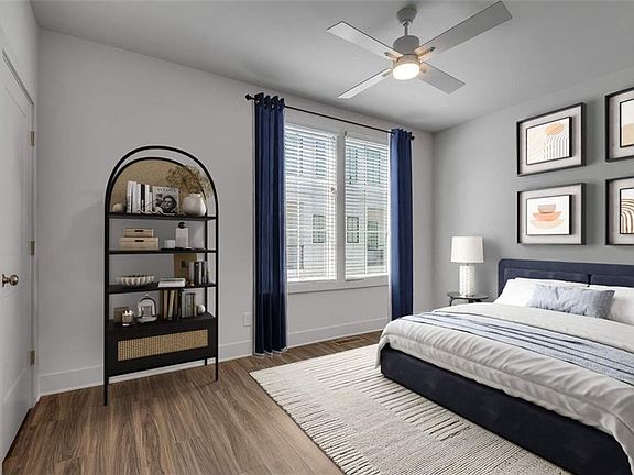 Welcome home! This open-concept design highlights a gourmet kitchen with quartz countertops and stainless steel appliances. The living room flows to a covered terrace, perfect for entertaining or relaxing. A first-floor flex space makes an ideal home office or workout room. Upstairs, the secondary bedroom features an ensuite bath and walk-in closet. The primary suite offers a sizable walk-in closet, luxurious bathroom, and a full wall of windows overlooking green spaces, tree top views, and some of the community amenities, free from other buildings blocking your view. Past the amenities, you’ll almost be able to one of the final Beltline connections just around the corner from your front door. Taking the car? For convenience and privacy, the private tandem two-car garage provides storage and extra space unique to certain homes in the community. Longreen combines modern design with a walkable lifestyle close to restaurants, breweries, and entertainment, placing you at the heart of West Midtown living. Come explore today.