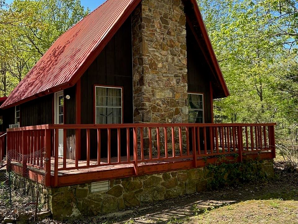 Check out this Ozark Mountain getaway! This rustic cutie is nestled in two serene, park-like acres. Enjoy your morning coffee and the fresh Ozark air while you watch deer from the front deck. Downstairs is a bedroom, bath, kitchenette, and dining/sitting area with an amazing two story native stone fireplace for getting cozy on a cool fall evening. Upstairs is an airy loft bedroom with its own closet. At the back of the house is an attached 18' x 30' garage room with a wood burning stove that can be used for a variety of needs. It could make an awesome entertaining space and be adapted into a kitchen/dining/sitting area for hosting larger groups. Additionally there is a covered porch/carport off the garage room and two storage rooms. Located an easy 15 minutes from the Stone County Courthouse Square this property is convenient for all the fun that Mountain View has to offer, but still gives you the peace that you crave. Call listing agent, Rebecca Stair, at 479-601-3295 to schedule a showing.