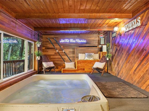 With all-new flooring, furniture, and appliances spread throughout this 2,424 sqft home, this meticulously maintained 4 bedroom, 2 bathroom residence exudes comfort and cabin-style. Cozy up by the gas or wood-burning fireplace, entertain in the family room with a game of pool or compete on the Pac-man game. Whatever your heart desires, this A-Frame will have you indulge in all its amenities, such as the indoor spa-room on the bottom floor, which is accessible from the master suite and bottom deck. Additional highlights include a boatload of parking spaces and ample amounts of serene, forest views.