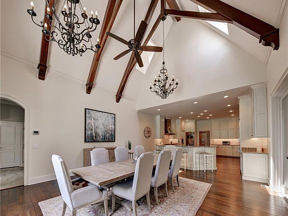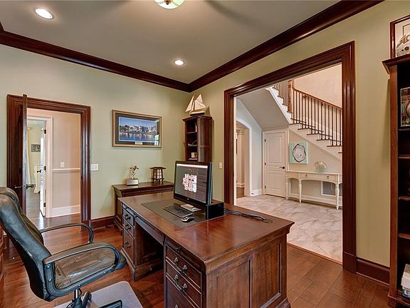 This Lamar Webb designed home reminiscent of the manor houses of days gone by tucked into a beautiful live oak canopy featuring stone accents, arched windows, impressive roof lines and even a Porte-corchere that connects the main home to an additional two car garage. This two-acre property offers wonderful lake views with over 200 feet of frontage, a beautiful lawn that blends into the natural surroundings and a dock for fishing or enjoying the lover 400-acre Frederica Lake by boat. This home has a rustic but formal feel with a grand hall entry, generous open living spaces, wonderful wood ceiling accents and wood floors. Light streams through this home with an eastern exposure and large windows and doors throughout.