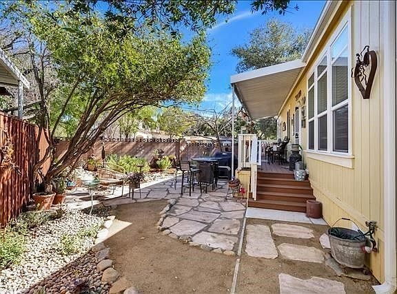 Looking for a Manufactured home in the highly desired Golden Oaks 55+ Community? Well , you're in luck. This 2 bedroom plus office (or 3rd bedroom) , 2 bathroom manufactured home built in 2017 , has 1344 sq ft of living space and a spacious landscaped yard perfect for entertaining . With open floor plan and 9' ceilings , vinyl plank flooring throughout and tray ceilings in living and dining room. Gorgeous kitchen with farm sink, ultimate stainless steel appliance package, large center island /bar ,upgraded white shaker cabinets and solid surface counter tops. Several solar tubes and skylights throughout . Energy star home with 6 walls and max insulation. Home has a 20 foot partial wrap around porch with trex decking. Living room and Primary bedroom offer single french doors to the deck and yard . Main bedroom also has a walk in closet and en suite with upgraded ceramic tile shower. The outdoor space just adds to the beauty and tranquility of this home.