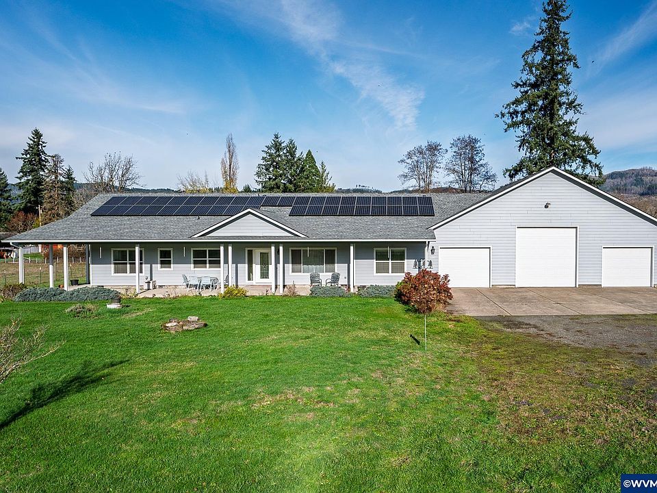 Property is a flag lot on JR acre w/home facing south w/amazing views of the mountain range and terrain. This single level home is almost 3,000 sqft of living space w/a vast primary suite including a large walk-in closet & slider door to back covered patio setting. This custom design home offers a large kitchen w/double oven, island, walk-in pantry & open concept to living space and gas fireplace w/slider to back covered patio area great for entertaining. Two separate bedrooms on opposite sides to the primary suite offer separation and privacy. The den/office w/exterior man door could be used as a 4th bedroom non conforming w/no closet. Walking into the massive 6-8 car garage is any mechanics or RV, travel trailer, boat or any recreational hobbyist dream. The home has a built in 11,000 KW generator system setup for any unexpected weather situation, natural gas hookups, 2 W&D hookups, sound proof walls, 2 additional storage rooms, RV parking, hook ups & hard wired for security systems.