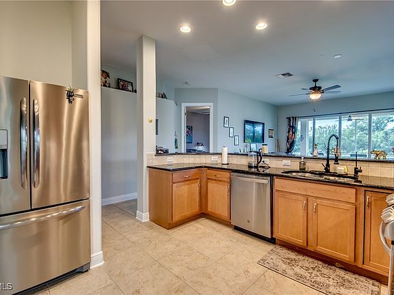 This hidden gem is the largest unit in Devonshire Lakes. This 3/2 is spacious and bright with amazing 180 degree lake and preserve views which exude comfort and relaxation. This home has impact resistant windows and doors, stainless steel appliances and granite counter tops. This roomy 1618 sq ft unit with extended lanai was owner designed and built in 2008. The lakefront views of deer, otter, and water fowl from the great room and the master bedroom are spectacular. The master is not only spacious but also has an unexpectantly enormous closet. The heated community pool is just a few doors away. The 2008 construction means many years remaining on the tile roof plus a new water heater 2025. No flood insurance needed in Gateway.