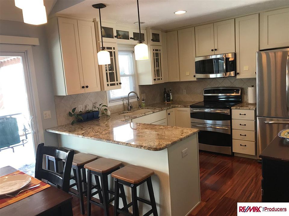 This one will NOT last!! Seller spared no expense when updating and remolding this home. South facing home with view for miles from the large entertaining deck. Updated eat in kitchen, with granite counter tops and high end GE Profile appliances. Updated Jack & Jill Bathroom, all high end finishes. Remolded basement family room, with a new 3/4 bath. Professional landscaping around whole exterior of the home, including patio at walkout basement door. Minutes from I-80. In a wonderful neighborhood with walking and biking trails to the East. Adjacent to Tranquility Softball Complex. Walking distance to Standing Bear Lake. Must see top of the line updates include: New A/C in 2015, Newer Furnace, New Water Heater in 2012, New Windows and Doors in 2008, New Front Railing in 2009, Professional Landscaping and Patio in 2009, New Garage Door in 2005, New Large Deck (half covered) in 2005, Newer Roof & Siding.