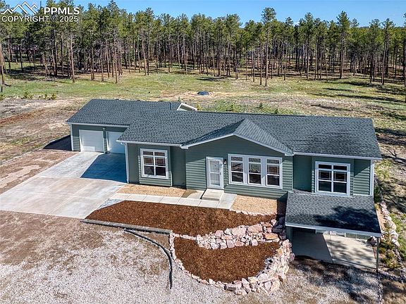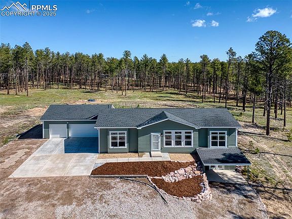 Escape to the serenity of country living in this three-bedroom, three-bathroom home nestled within majestic Ponderosa pines of Black Forest. With over 5 acres of pristine land, you will have ample space to breathe in the fresh mountain air and enjoy the tranquility of nature. The property boast beautiful pines and approximately 200 Ponderosa pine seedlings,offering endless possibilities for gardening,composting, or even building a greenhouse. The expansive grounds provide a peaceful retreat, perfect for those seeking a rural lifestyle without sacrificing modern comforts. Inside, the 3 bedroom 3 bathroom home offers a comfortable living space, while the three-car garage provides ample storage and parking with an extended driveway. The main level features a great layout with 3 spacious bedrooms for convenience. The basement is a treasure trove of possibilities! A large unfinished area invites you to unleash your creativity, whether that's crafting a hobby room, building a state-of-the-art theater, or designing a workshop for your next DIY project. The space would also be fantastic for a dedicated exercise gym. The cozy family room downstairs has a Franklin gas stove and is perfect for cool evenings. Adjoining the family room is an open area with a walk out and full bath that has many possibilities such as a guest area, sewing room, play area or a quite reading nook with a lovely view. The private bedroom in the basement could also be used for a home office. The nearby quaint shops and eateries offer a convenient way to grab a bite to eat or pick up a variety of essentials. There are no covenants or HOA fees for this subdivision. There are a variety of places for worship without having to drive into town. Residents can enjoy hiking and exploring the great outdoors in this lovely setting.The scenic drive around Colorado Springs and the surrounding areas are truly breathtaking and having Pikes Peak as a constant companion makes every drive a delight.