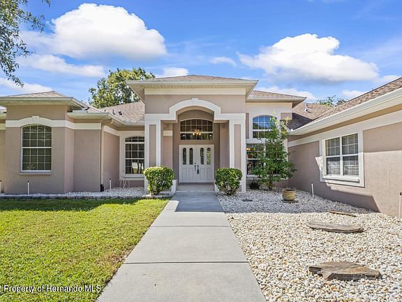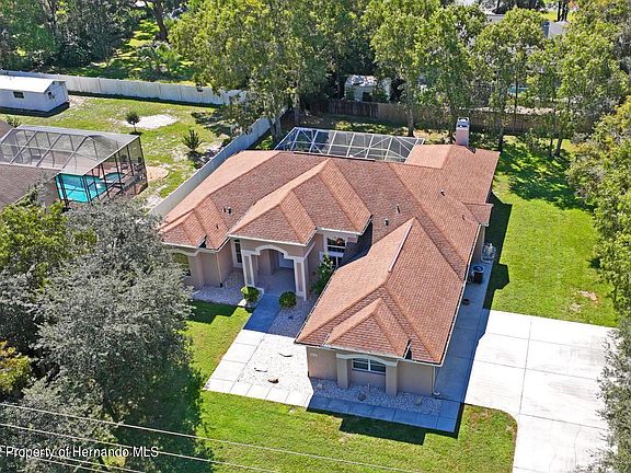 Four-bedroom, three-bathroom, three car garage, in-ground screen enclosed Pool Home situated on a spacious half acre lot in Spring Hill! Well maintained inside and outside and truly shows pride of ownership! Double door entry leads you into the formal living area with beautiful views of the pool. Formal dining area perfect for your special gatherings. Beautiful eat in kitchen with expansive granite breakfast bar top and seating areas. New stainless steel kitchen appliance package included! Inviting family room with beautiful wood burning fireplace and spacious seating area. Large master bedroom suite with flexible seating area that everyone is looking for with easy access to the pool! Bathroom features dual closets, dual sinks, granite countertops, beautiful wood flooring, a jetted spa tub with separate stand-up shower and a water closet! Split bedroom plan with guest bathroom leading directly to the pool area. Vaulted ceilings throughout as well as beautiful flooring everywhere! Home set deep into the lot with beautiful side and rear yard areas to enjoy year-round! The owners have invested thousands of dollars in updates and upgrades in the last few years to this nice Home! Seller's also will give buyer's a closing cost credit towards a new roof! Call today!