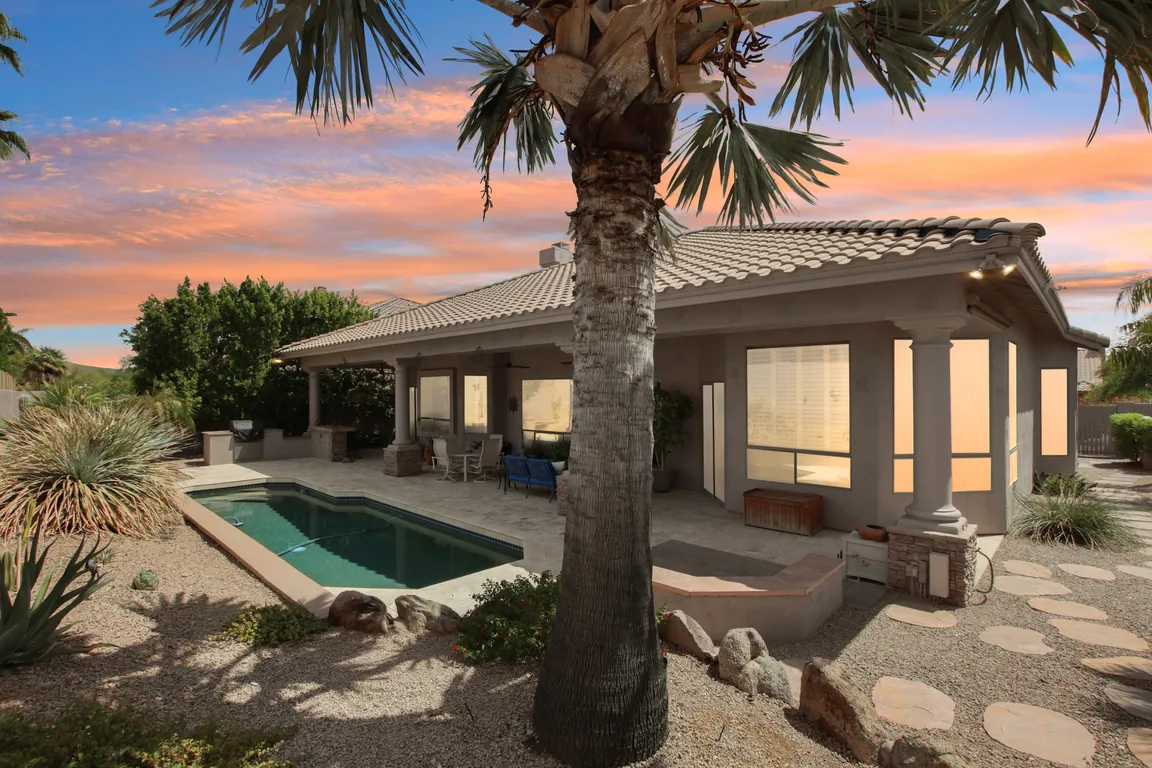 Located in the gated community of Sonoran Heights, this beautifully updated home combines quality finishes with thoughtful design. The remodeled kitchen includes custom alder cabinetry, granite counters, tumbled stone backsplash, center island, and GE Profile appliances with convection oven, Advantium microwave, and 5-burner cooktop. A spacious great room, plantation shutters, and ...