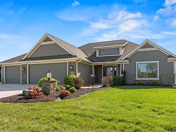 This custom one-story home by Sievers Builders in sought-after Eagle Rock checks all of your boxes. Situated on a half-acre lot with professional landscaping, this home boasts a stunning exterior and bright and spacious interior with high-quality finishes. The open-concept kitchen/dining/living area is perfect for entertaining, featuring LG ThinQ smart stainless steel appliances, a granite island, and a custom coffee bar leading to a spacious four-seasons room with fireplace. The owners suite features a tile shower, double vanity and very spacious walk-in closet. The guest bedrooms are massive. There is a built in locker system conveniently located between the foyer and garage entry area, a large pantry with custom shelving and separate laundry room with utility sink and half bath amenities. The park-like backyard offers a custom pergola, hot tub, and firepit for outdoor enjoyment. Additional highlights include privacy-tinted windows, oversized 3 car garage with smart openers and new storm doors. Experience refined comfort and timeless elegance in this exceptional home that has been lovingly maintained.