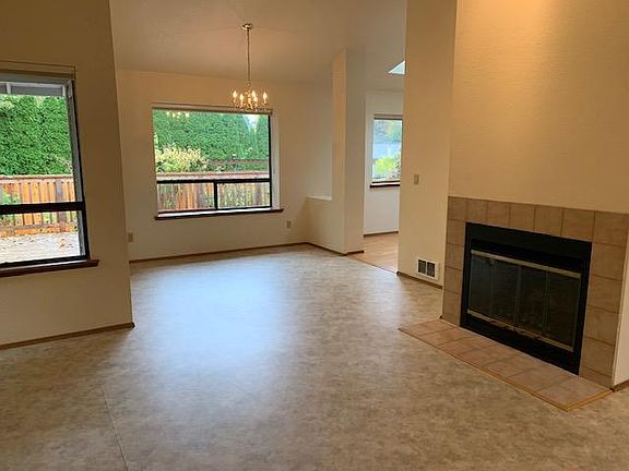 The light filled, open concept home boasts vaulted ceilings, Large living and dining rm, kitchen & fam rm flowing into a circular floor plan. Huge Master Bed & Bath with large walk in closet. The common area has hardwood floors, bay window and fireplace. Newly painted exterior, newer composition roof, huge deck for entertaining. 2 car garages. Great home in a wonderful location! close to Seattle, shopping and restaurant, near bus line. Good schools! Tenant responsible for all utilities.