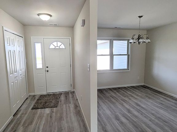 New Construction - Nearing Completion!  3-BR, 2-BA Split BR Plan Ranch-style home with large open concept great room, expanded 2-car garage w/ opener.  Eat-in-kitchen with island snack bar, built-in dishwasher, microwave & disposal, granite countertops.  Main-level laundry room with large pantry.  Spacious main bedroom with huge W.I.C. and 3/4 bath.   Covered front porch.  96% efficient gas-furnace & 15-SEER A/C. Tankless water heater.  10x10 concrete patio at sliding door. Backs up to wooded area.