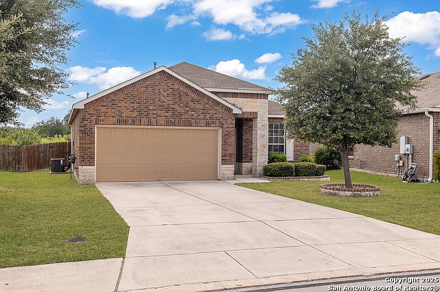 Beautifully maintained three bedroom, two bath home with an office located in the highly desirable Alamo Ranch community. This inviting rental is owner-managed and showcases excellent curb appeal along with a comfortable, open design that blends style and functionality. Step inside to find a welcoming entry with a private office, perfect for remote work or study. The spacious living room highlights a decorative tray ceiling and flows seamlessly into the open kitchen, complete with stainless steel appliances, refrigerator, generous cabinet and counter space, center island, and a breakfast nook. The primary suite provides a true retreat with a relaxing soaker tub, separate shower, and double vanity. Two secondary bedrooms share a well-appointed guest bath. HOME HIGHLIGHTS: New carpet in secondary bedrooms, water softener and garage door opener. Outdoors, enjoy a covered back patio and a large yard ideal for weekend barbecues, entertaining friends, or simply relaxing in your private space. Community Highlights: Alamo Ranch offers a lifestyle of convenience and enjoyment with quick access to Loop 1604, Hwy 151, shopping, dining, and Lackland AFB. Residents will love the neighborhood's parks, playgrounds, swimming pool and walking trails, along with the benefit of highly rated NISD schools.