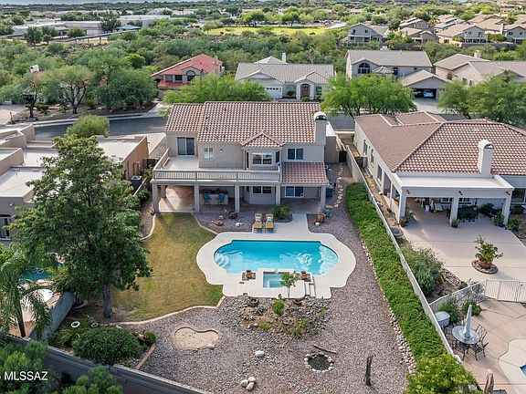 Experience Breathtaking Santa Catalina Mountain views from this beautifully appointed 5-Bd, 3-BA home offering over 3,130 sq. ft. of living space overlooking the pool, spa, and cascading waterfall--the perfect setting for relaxation or entertaining. The flexible floor plan features a main-level bedroom & bath, ideal for multigenerational living or guests. The chef's kitchen is a showstopper with built-in wine storage, center island, breakfast nook, and cozy fireplace with stunning views from every window. Beautiful wood-look ceramic tile flooring spans the lower level, including the foyer, family room, living and dining areas. Retreat to the luxurious primary suite and ensuite, featuring direct access to the upper deck--ideal for taking in tranquil sunrises and panoramic mountain vistas Enjoy two private lower patios with walled oversized yard for peaceful outdoor living. On top of that add 3-car finished garage providing ample space for vehicles, storage, or a workshop. This home seamlessly blends elegance, functionality, and Arizona outdoor livingperfect for those who value space, comfort, and breathtaking views. This home is close to fine dining, shopping, medical facilities, movie theaters & recreation to include biking, hiking and walking trails. Don't miss this chance to live in a premium home in a wonderful community with great schools and minutes from everything.