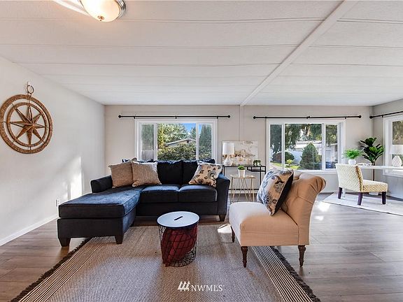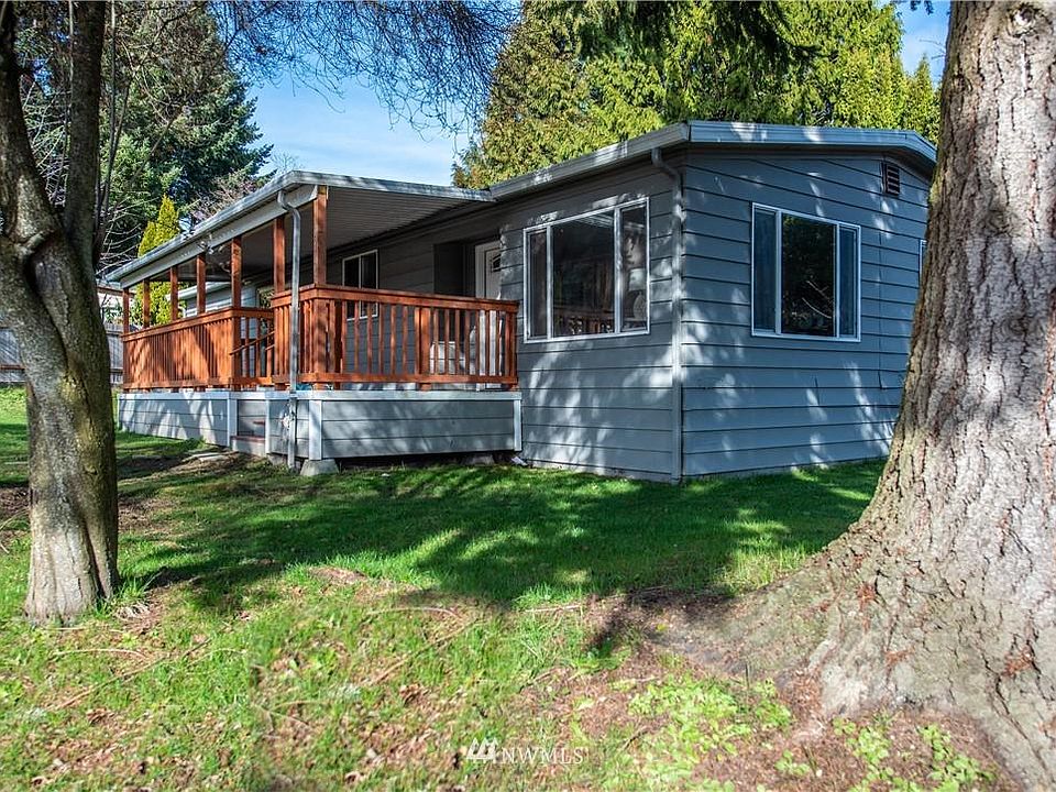 Welcome to this Holly Hills charmer where you own the lot and reap the benefits of homeownership. A large 5150 sf corner parcel and inviting front porch for relaxing feels like home. 1344 sf, 2 bedrooms, 2 baths and large open living/kitchen/dining has tons of natural light & big windows. Vinyl plank flooring, white kitchen cabinetry, stainless appliances, open shelving, & kitchen slider that opens directly to the front deck. Vaulted Ceiling.Room for a work at home desk space.Holly Hills Community Center with event rental space, RV Parking and park give a sense of community. Close to downtown Woodinville and WA wineries. Easy commute & proximity to 405 & 522. Highly sought after Northshore School District. Great AirBB or VRBO potential.